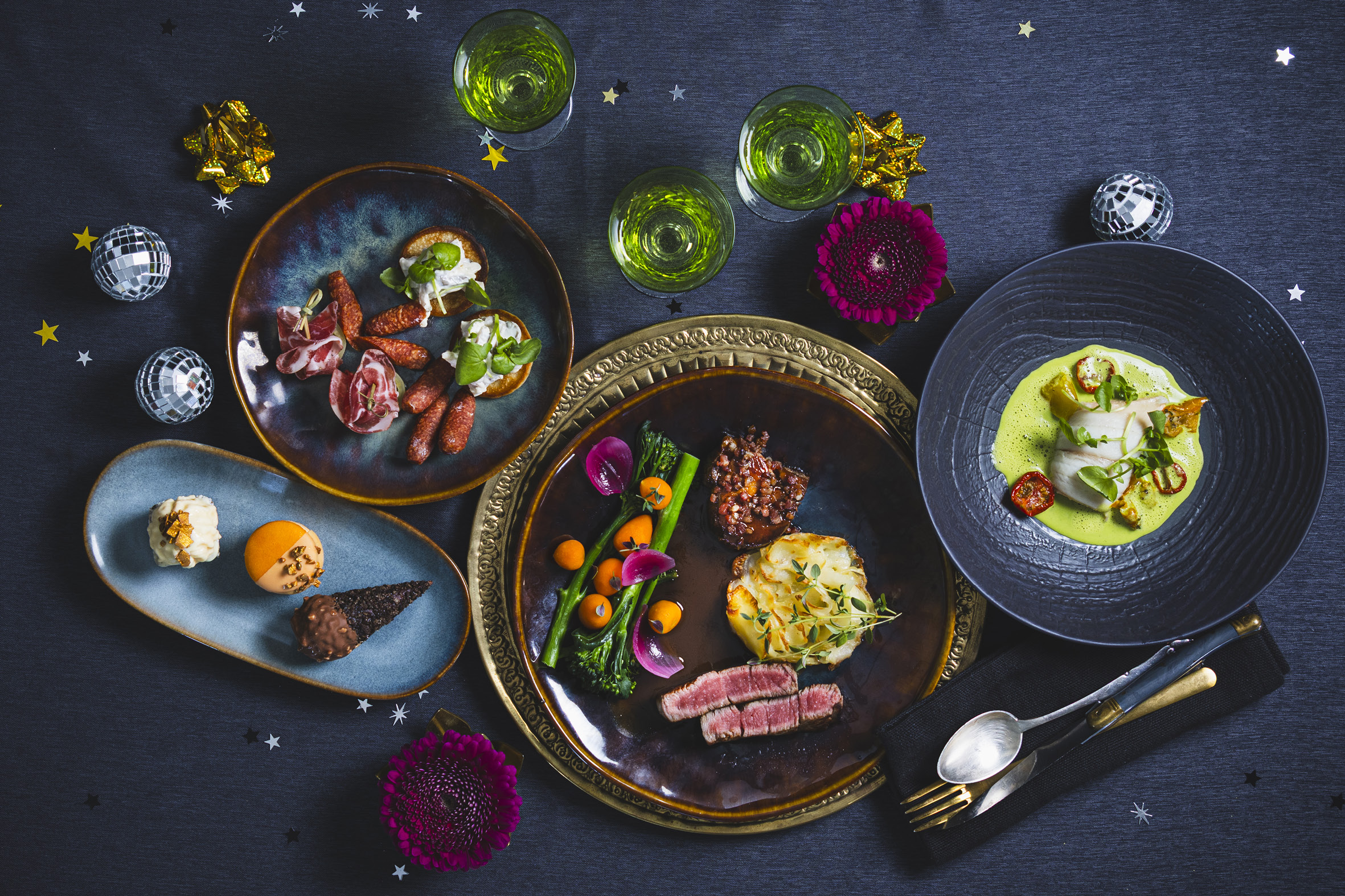 Tag stressen ud af nytårsaften med vores menu. Fire perfekte serveringer, der sikrer, at din aften bliver fyldt med smag, elegance og festlige overraskelser.